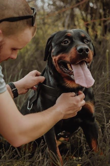 The PDF will indicate the charging time required – usually several hours for a full charge. A solid or flashing light often signals charging status; the manual details these indicators. Avoid overcharging, as it can potentially damage the battery. Always disconnect the charger once fully charged. Proper charging ensures reliable operation during training sessions and extends the lifespan of your device.