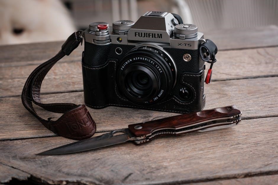 Crucially, the back panel also houses the battery compartment, accepting standard batteries to power the camera’s electronic functions. Detailed in manuals, including the German version from 2020, these controls are vital for operation. Understanding their placement and function ensures smooth film loading, rewinding, and camera power management.